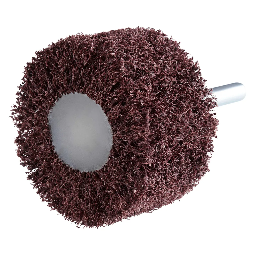La roue à lamelles en non-tissé VS de RHODIUS a été conçue pour être utilisée sur les meuleuses droites ou les machines à entraînement d’arbre flexible et logement de 6 mm.